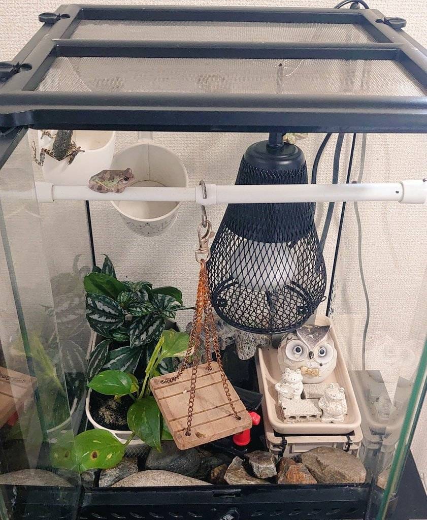 また、カエルは変温動物なので、温度的なエネルギー消耗はあるかと思いますが、冬にはライトなどを入れて常に春のような温度感にしてあげれば大丈夫です。