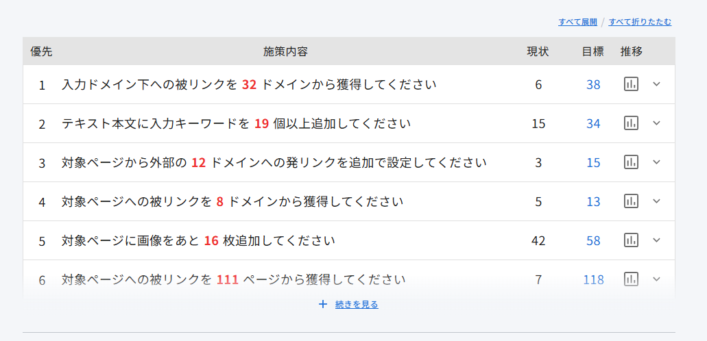 ちなみにこちらのGMO順位チェッカーですが、AIで分析して改善策を提供してくれるんです。(AI SEO ディレクター)内部SEOにも外部SEOにも強い構造になっていますね。